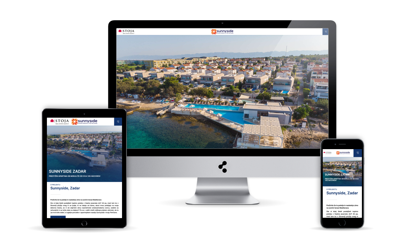 Oblikovali in izdelali smo spletno stran za novogradnjo Sunnyside Zadar. Sunnyside Zadar je novo nastala soseska prestižnih apartmajev na vrhunski lokaciji povsem zraven morja.
